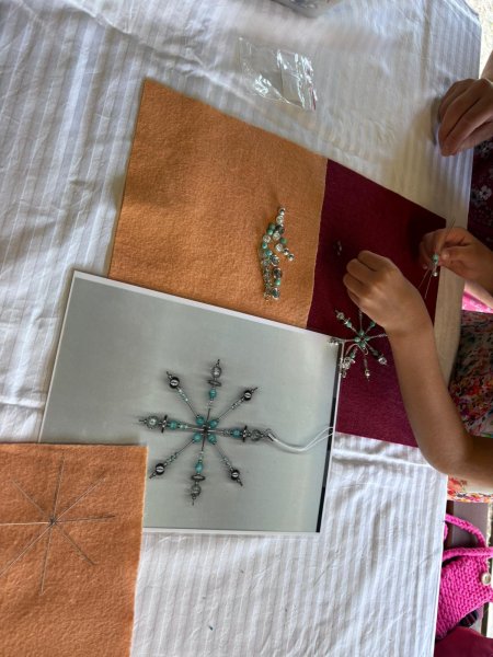 Návštěvníci si z připraveného materiálu mohou připravit svůj vlastní šperk - náramek či náhrdelník.
